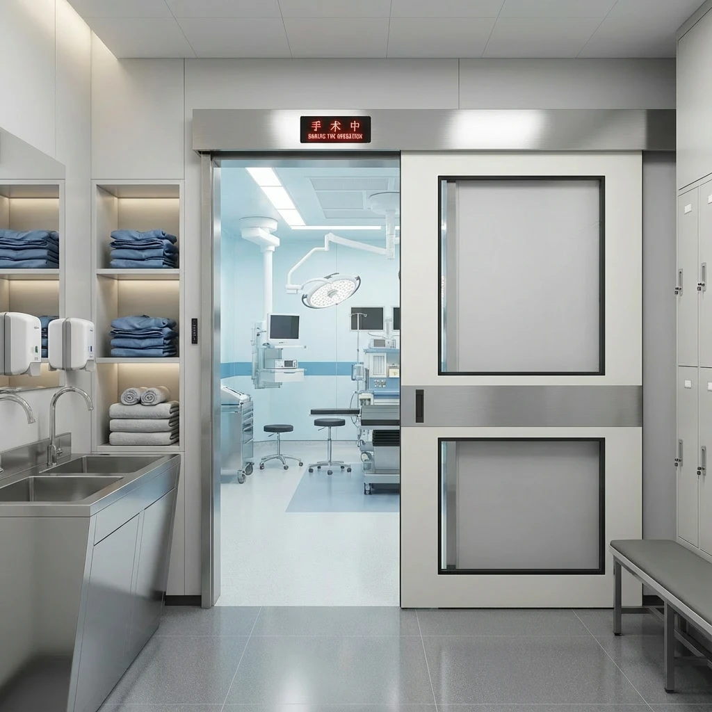 These sliding doors are designed for easy access and smooth operation, even in high-traffic areas. They are equipped with automatic sensors, ensuring hands-free operation to minimize cross-contamination. The cleanroom design also includes features like smooth surfaces and minimal gaps, making them easy to clean and disinfect. Used in operating rooms, laboratories, and pharmaceutical manufacturing areas, these doors are integral to the overall hygiene and safety standards in healthcare settings.