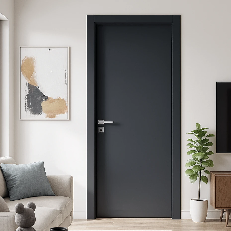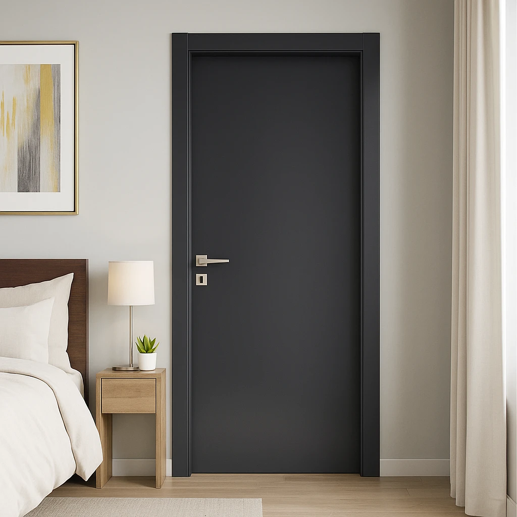 The flush matte black interior door perfectly suits modern interiors characterized by clean lines and understated beauty. Its simple silhouette and smooth surface make it ideal for contemporary homes, apartments, or boutique hotels. Combining aesthetic harmony with functionality, the wood flush matte black interior bedroom door represents a perfect balance of style, durability, and modern sophistication—an ideal choice for those seeking a sleek, refined statement in their living space.