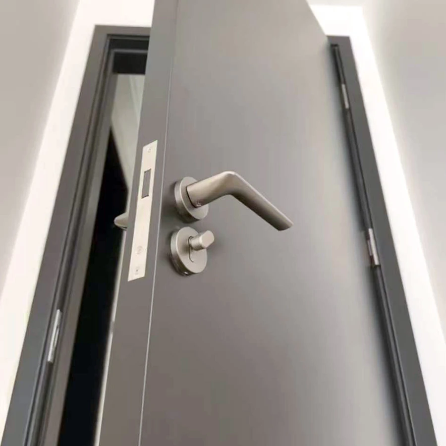The surface is finished with a soft matte black paint, creating a luxurious, velvety texture with no glare. As an interior bedroom door's black adds depth, contrast, and timeless sophistication to any space. It evokes a sense of calm, strength, and refinement while complementing modern materials such as glass, stone, and metal. Matte black enhances interior spaces by emphasizing simplicity and balance, making other design elements stand out more vividly. The soft matte finish also offers practical advantages—it effectively hides fingerprints, dust, and minor scratches, maintaining a clean and elegant appearance with minimal upkeep. The coating is eco-friendly and low in VOCs, ensuring a healthy, odor-free environment.