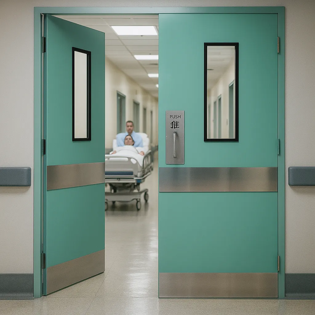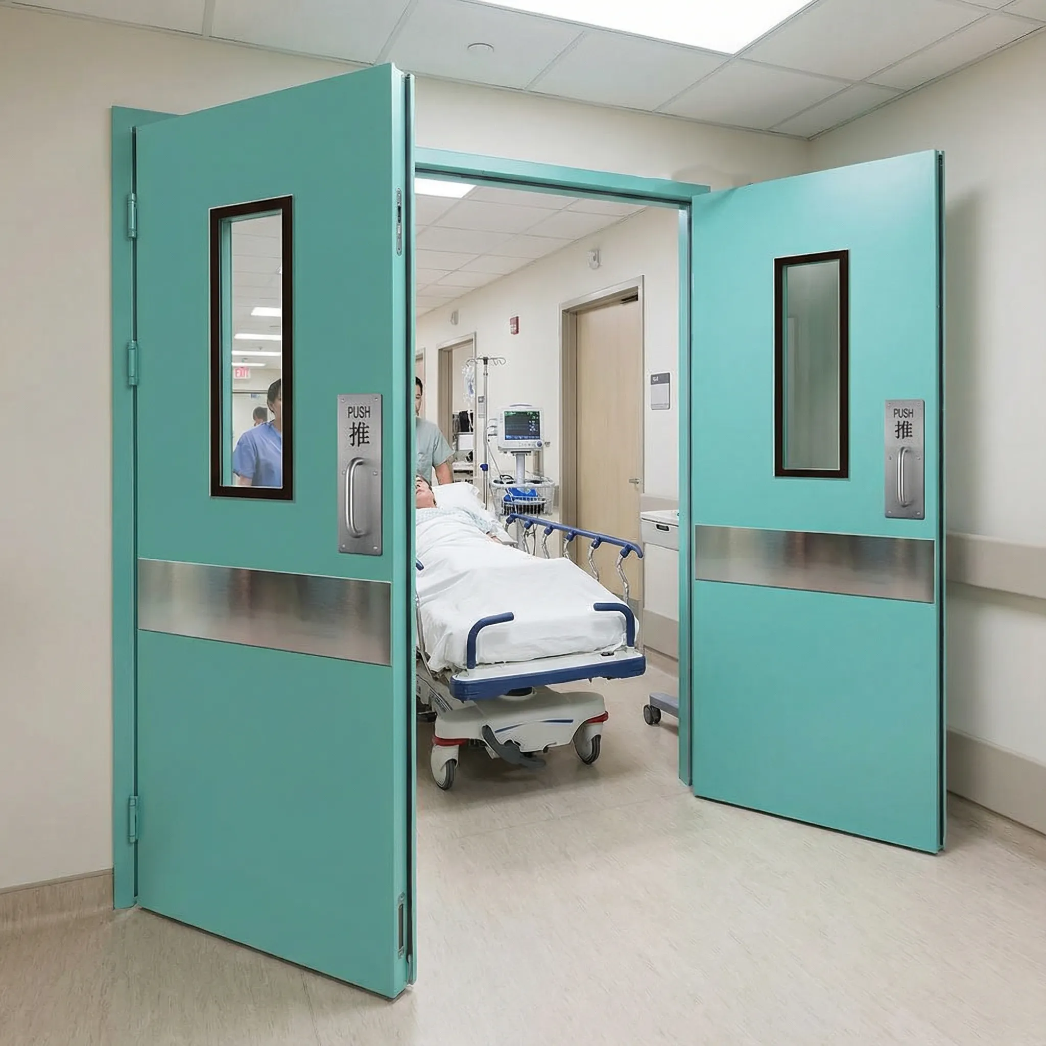 One of the most important features of this door is its double swing functionality. Unlike traditional doors that open in one direction, this door can swing open both ways with a simple push. This feature is key in high-traffic hospital environments, as it allows for easy entry and exit from either side. It enhances the efficiency of traffic flow, particularly in crowded areas where medical staff, patients, and equipment need to pass through quickly and without delay. This is especially beneficial for individuals with mobility challenges, such as those using hospital beds or wheelchairs, as it eliminates the need to pull a door open, providing a much more accessible and user-friendly solution.